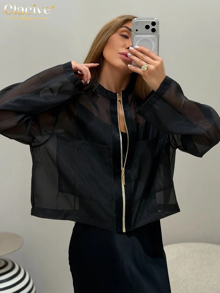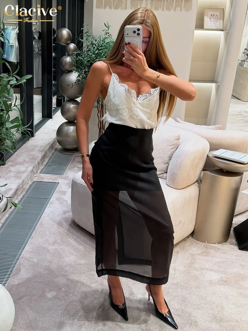 Clacive Sexy Loose Black Skirt Set 2 Piece Woman 2026 Fashion Long Sleeve Shirt With High Waist Long Skirt Set Female Clothing
